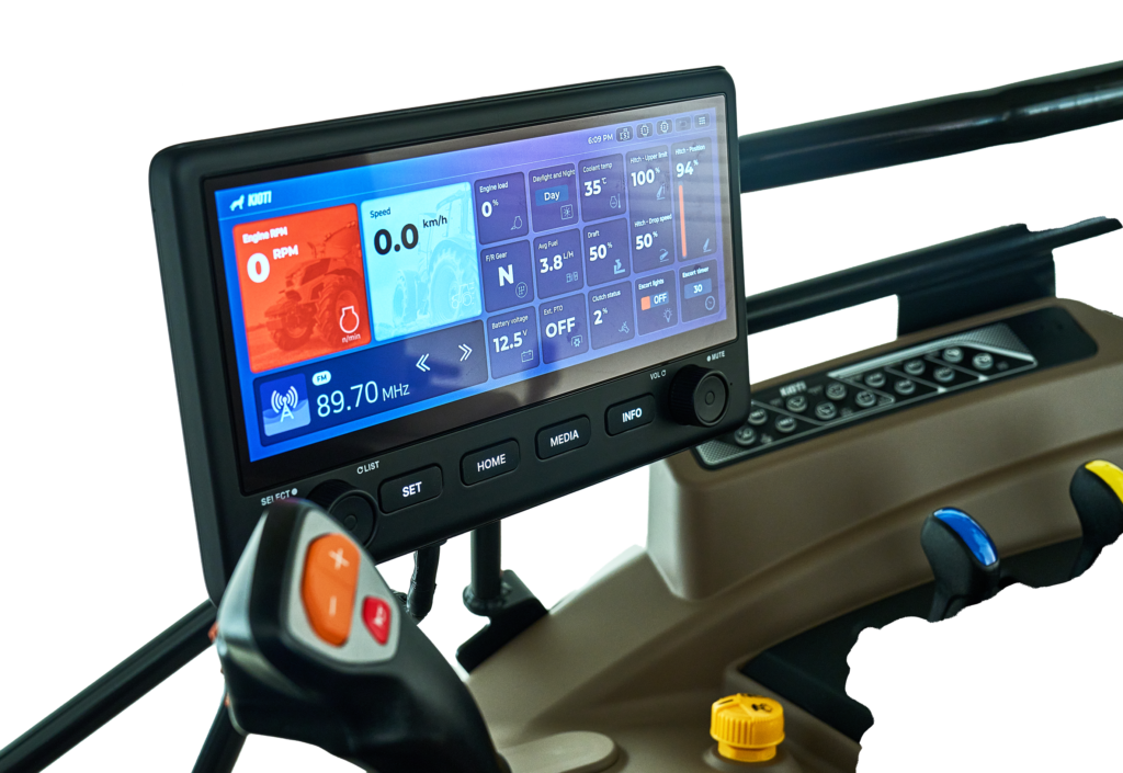 12.3″ monitoriuje ne tik stebėsite traktoriaus būseną realiu laiko ir reguliuosite nustatymus. Taip pat galėsite džiaugtis pramoginėmis funkcijomis, tokias kaip „Bluetooth“ radijas.